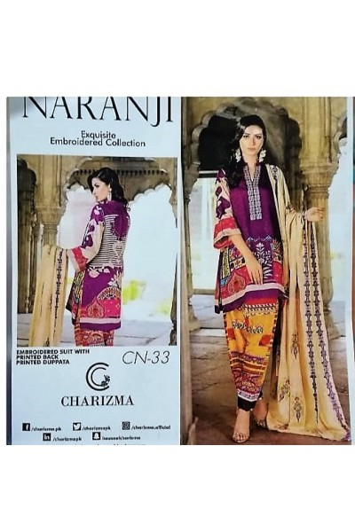 This is a 3 piece unstitched suit, comes with printed net dupatta, embroidered shirt and printed bottom.